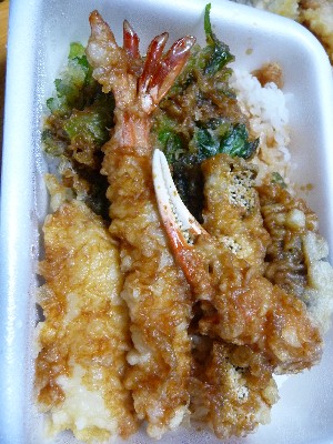 かき揚げが乗っている天丼はちょっとカロリー高め。