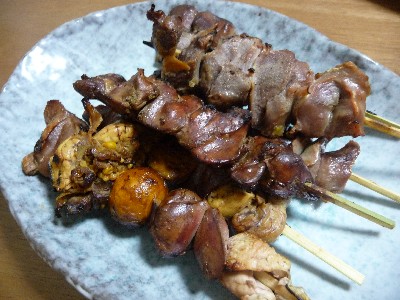 モツ・・・キンカンつき。個人的にはキンカンは焼いたものより煮たほうが好きだ。