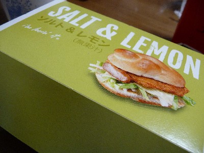 ソルト&レモン:パリッ!と揚がったレモン風味のチキンを、粒塩が効いたソースでサンド。