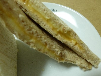 全粒粉入りパンにチェダーチーズを、白いパンにゴーダチーズをサンドしました。