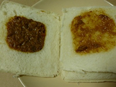 ひとつはそのまま(右)、もう1つは軽くトースト(左)