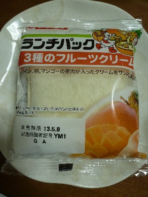 パイン、桃、マンゴーの果肉が入ったクリームをふんわりパンにサンドしました。