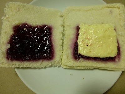ブルーベリージャムがたっぷり。そしてマーガリンもたっぷり。