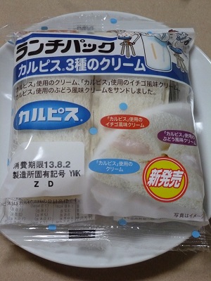 ペアタイプのパン(ぶどう風味クリーム):73kcal/(イチゴ風味クリーム)熱量:73kcal
