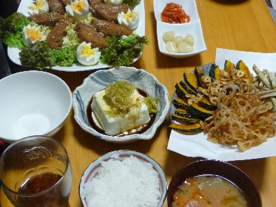 冷奴:36kcal (絹ごし豆腐、長ねぎ、醤油)