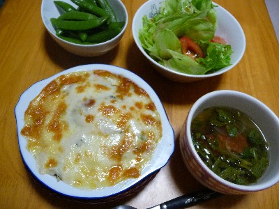 (ごはん、ウィンナー、玉ねぎ、ピーマン、人参、チーズ、ホワイトソース、バター、調味料)