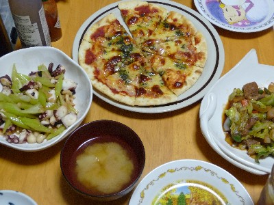 たことセロリの中華風炒め:147kcal (たこ、セロリ、ブナピー、ごま油、ウェイパー、にんにく、唐辛子)