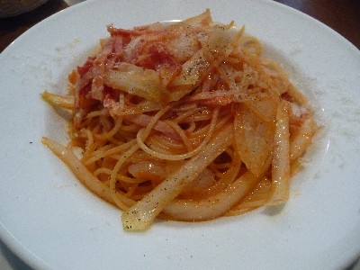 私はベーコンと玉ねぎのトマトソース ペコリーノチーズ添えを。