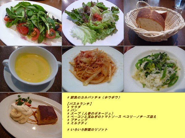 <パスタセット> パスタorリゾット+サラダ+スープ+パン+デザート+コーヒーor紅茶