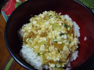長芋を細かく刻み、薬味に長ねぎ、風味付けになめたけを加えてみた。