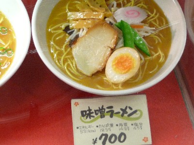 味噌ラーメン:531kcal (焼豚、もやし、メンマ、なると)