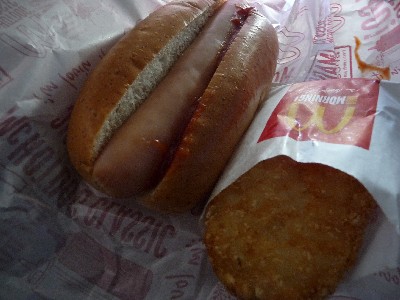 ハッシュポテトサンド:285cal (食パン〔8切/1枚〕ハッシュポテト@マクドナルド、ケチャップ)