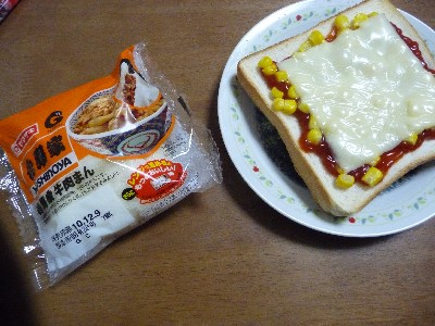 ピザ風トースト:273kcal(食パン〔6切/1枚〕、チーズ、コーン、ケチャップ)
