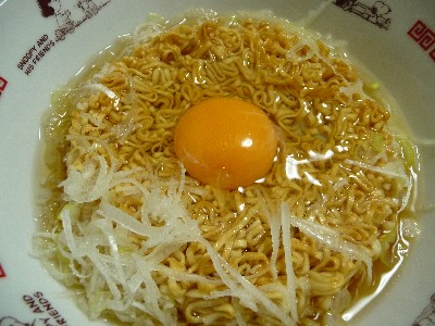 チキンラーメン:448kcal(チキンラーメン〔375kcal〕、たまご、長ねぎ)
