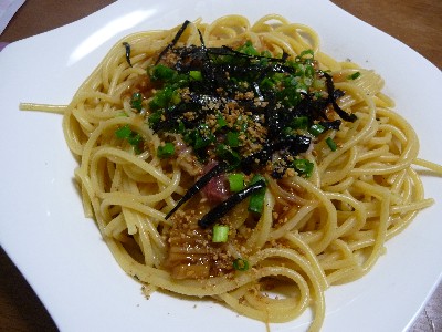 (スパゲッティ、ハム、玉ねぎ、ピーマン、エリンギ、