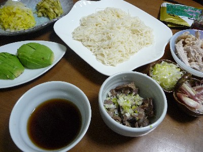 そうめん:466kcal (そうめん、めんつゆ、長ねぎ、みょうが)