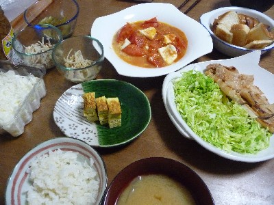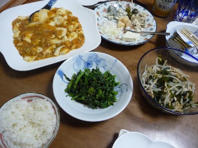 麻婆豆腐:330kcal (絹ごし豆腐、麻婆豆腐の素、ねぎ、しょうが、にんにく、ごま油...)