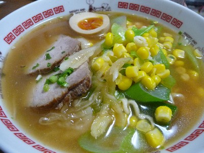 野菜〔コーン、キャベツ、玉ねぎ、長ねぎ〕、酢、ラー油、バター)