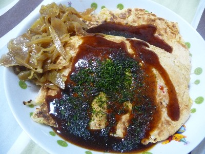 (お好み焼き粉〔356kcal/100g〕、たまご、