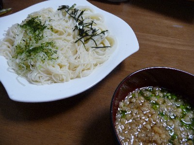 つけつゆ〔めんつゆ、長ねぎ、小ねぎ、揚げ玉、すりごま〕)