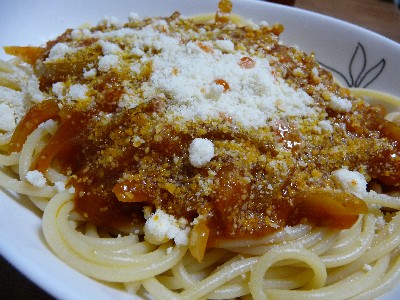ミートソーススパゲッティ:713kcal (スパゲッティ、ミートソース〔レトルト〕、玉ねぎ、調味料...)
