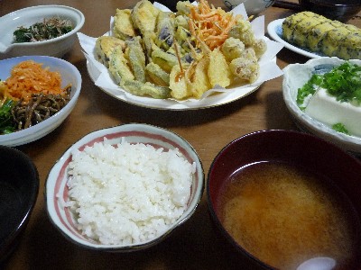 天ぷら:732kcal (さつまいも、かぼちゃ、なす、にんにく、にんじん、れんこん、玉ねぎ)