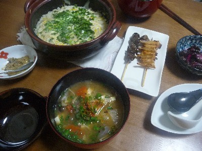 玉子雑炊:296kcal (ごはん、たまご、昆布、小ねぎ、牡蠣味噌、ポン酢)