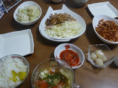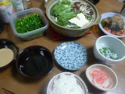 ポン酢、ごまだれ、小ねぎ、唐辛子)