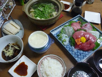 刺身盛り合わせ:240kcal (大トロ、いか、かわはぎ、金目鯛、いかおくら)