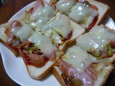 (食パン〔8枚切・2枚〕、チーズ〔60kcal・2枚〕、ソーセージ、レタス、ピクルス、ケチャップ)