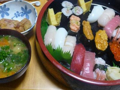ホタテ:43kcal サケトロ:79kcal ウニ×2:112kcal ネギトロ巻×2:79kcal 飾玉子:15kcal)