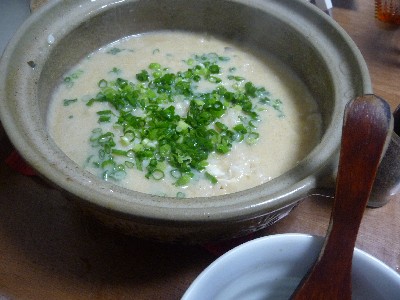 おじや(ごはん、たまご、小ねぎ、ポン酢、こしょう)