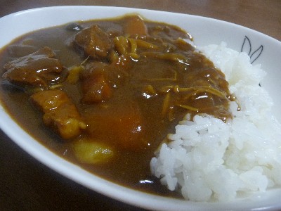 今日のカレーはきのこ入り。人参は畑で採れたものをいただいたらしい。