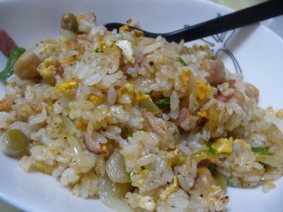 (ごはん、ベーコン、たまご、玉ねぎ、ピーマン、バター、調味料...)