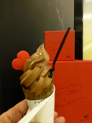 カカオの豊かなアロマときめ細かな舌触りは、まるで冷たい生チョコレートを食べているかのよう。赤いハートのクッキーがバレンタインにぴったり。ぜひ、会場でお楽しみください。