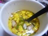 ワンタン、ねぎ、フリーズドライのたまご入りで「かき玉風」という感じかな?