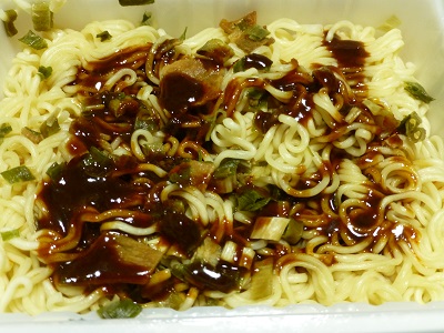 普通のぺヤングよりも少し赤みがかったソース。