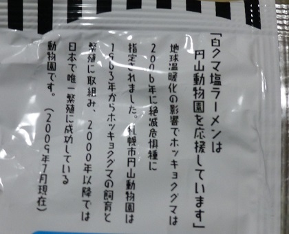 「白クマ塩ラーメンは円山動物園を応援しています」