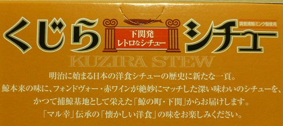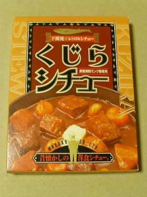 ミンク鯨肉、じゃがいも、人参、玉ねぎ、にんにく、マッシュルーム、