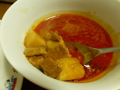 人参かトマトか判別不能だったけど入っていた赤い野菜がとろけそうなくらい柔らかい。