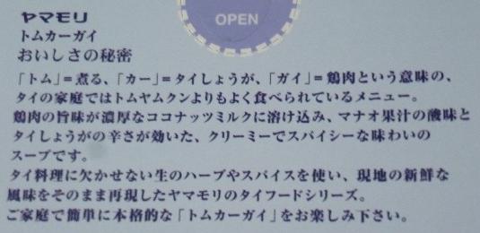 ただしヤマモリのトムヤムクンにはふくろたけと海老が入っているみたいなので次回トライしてみたい。
