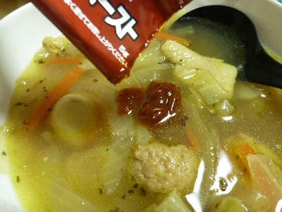大根とキャベツってめずらしい気がする。この時点では辛さは強くない。
