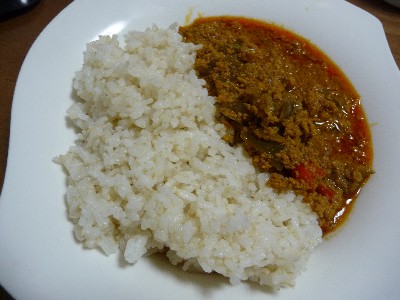 普通のレトルトカレーより少なめ・・・しかし、LEEと言う事を考慮して多めのごはん。