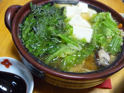今日使用した野菜はキャベツ、春菊、人参、えのき、椎茸。
