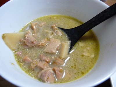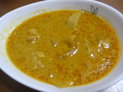 鶏肉、ココナッツミルク、じゃがいも、玉ねぎが入ってます。