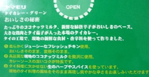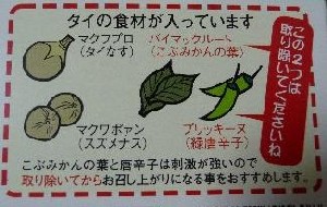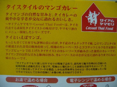 中のレトルトパウチには「おいしいタイカレーの食べ方」の記述が。