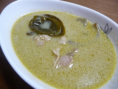 ココナッツミルクの色に隠れて青唐辛子の攻撃力がw!
