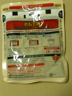 おもて面を上にして500Wで2分加熱。袋がしぼんだら取り出します。