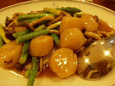 ホタテ!アスパラ!しめじ! でオイスターソースで味付け。