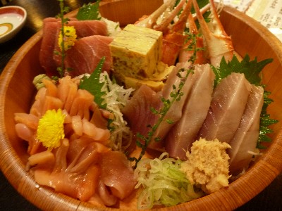 刺身盛り合わせ(中トロ、かつお、かに爪、玉子焼き、赤貝)